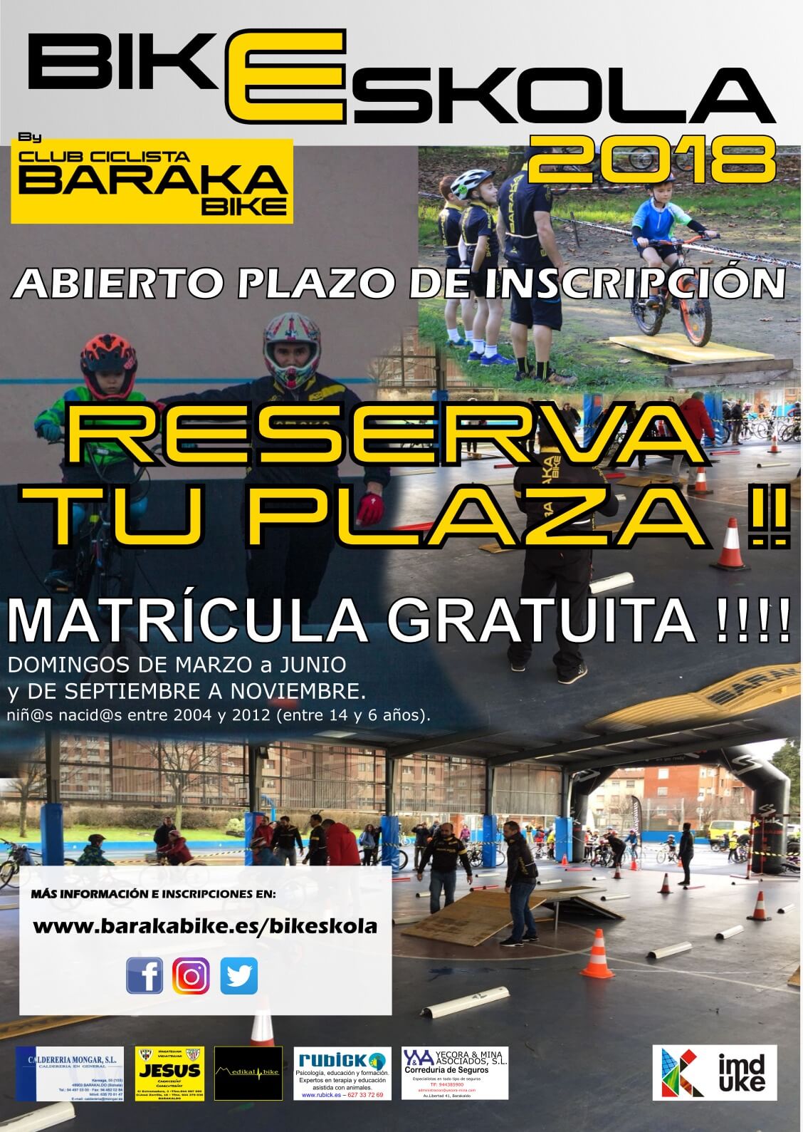 La BIKE ESKOLA es un proyecto de educación vial en bici que será liderada por los soci@s voluntuari@s del Club, cuya finalidad es educar y «enganchar» a los niñ@s entre 6 y 14 años a la bicicleta. Se desarrollará durante los meses de marzo a junio y septiembre a noviembre los domingos por la mañana. Para más información visita www.barakabike.es/bikeskola.