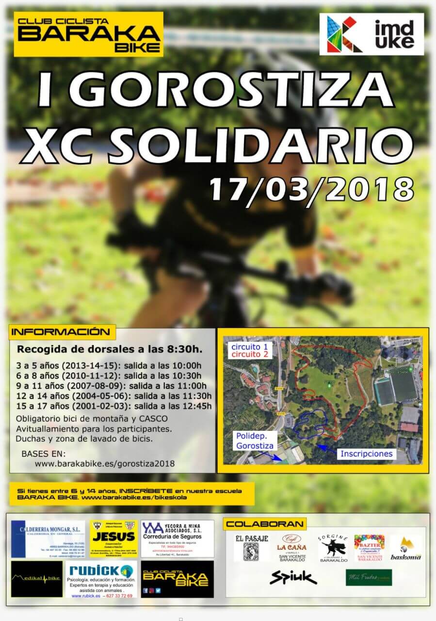 Además, el sábado 17 de marzo, se celebrará la I GOROSTIZA XC SOLIDARIA, una prueba de cross country en las campas de Gorostiza para niñ@s con edades comprendidas entre los 3 y 17 años. La prueba consistirá en dos circuitos cerrados con rampas y obstáculos al que darán vueltas en diferentes tandas distribuidas por edades. La inscripción será gratuita y cada participante entregará alimentos no perecederos como donativo. Para más información visita www.barakabike.es/gorostiza2018.