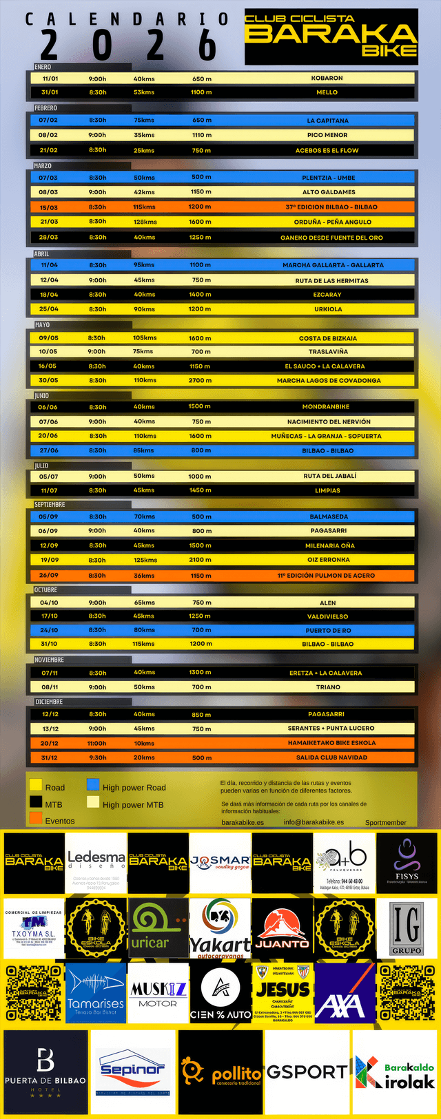 El Club Ciclista Baraka Bike ya tiene todo listo para pedalear el nuevo año. Presentamos con orgullo el calendario oficial de salidas para 2026, un programa diseñado con pasión para conectar a la comunidad ciclista con los paisajes más espectaculares y los retos más gratificantes. Para 2026, el calendario está cargado de una mezcla perfecta entre clásicos ineludibles y nuevas exploraciones, asegurando que cada salida sea una experiencia única.