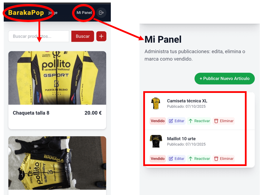 - Publica y Gestiona: Sube tus prendas, edítalas, márcalas como vendidas o elimínalas fácilmente.