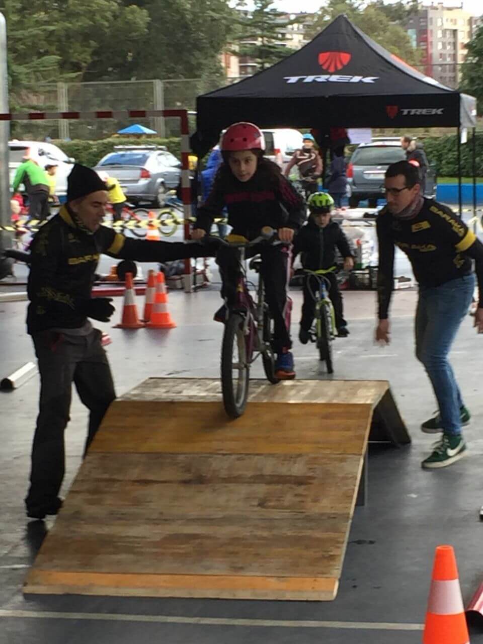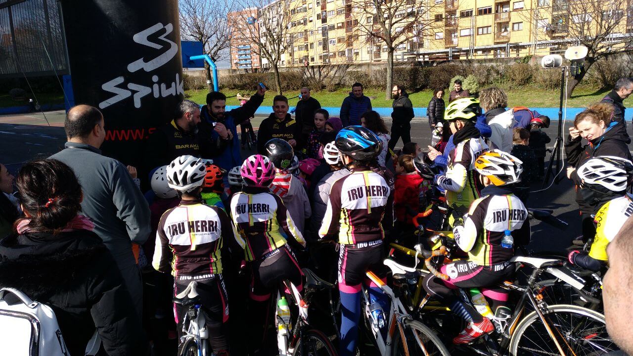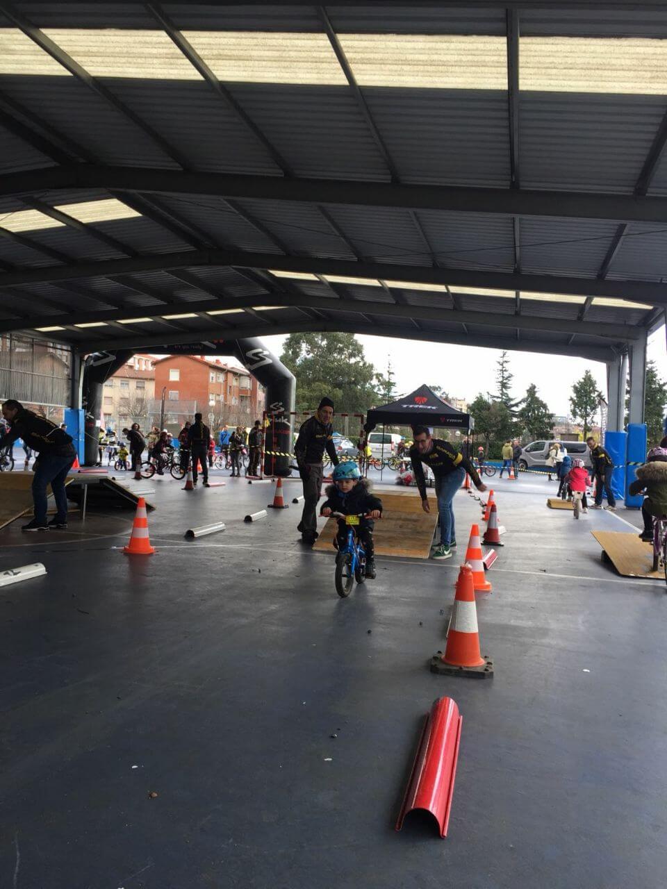Cuando ya tuvimos todo montado la lluvia había parado, sin embargo el intenso frío persistía y nos temimos lo peor, pero poco a poco empezaron a entrar bicicletas en el recinto de colegio con ñin@s bien abrigad@s, que rápidamente recogían su dorsal y disfrutaban del circuito. Hubo de todo, bicis de BMX, BTT, carretera, con marchas, sin marchas, con cestitas, sin pedales, con ruedines, l@s chaval@s de Hiru Herri con sus bicis de carretera dando brincos y derrapando, los ZuinBikers de Trápaga adornándose con acrobacias, niñ@s con seguridad plena en sus habilidades, l@s que transformaron el miedo en confianza en pocos minutos, l@s más pequeñ@s que necesitaban de ayuda y también hubo alguna lágrima antes de iniciar el recorrido que luego se convertía en sonrisa al acabar el circuito.